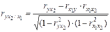 Частные коэффициенты корреляции характеризуют степень тесноты связи результативного признака и фактора, при элиминировании его взаимосвязи с остальными факторами, включенными в анализ. В случае зависимости у от двух факторных признаков частные коэффициенты корреляции рассчитываются: