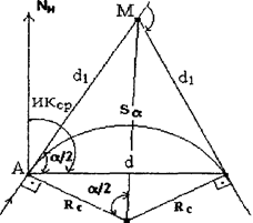 5. Траекторию движения судна из точки А в точку В по циркуляции можно провести в виде дуги окружности радиусом Rс, соединяющей точки А и В.