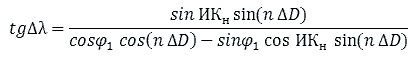 sin φT = sin φ1 cos (n ΔD) + cos φ1 cos ИКн sin (n ΔD)
