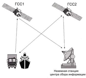 Спутники ГСС-1 и ГСС-2 выполняют роль ретрансляторов сигналов в линии радиосвязи между наземной станцией центра сбора и аппаратурой подвижного объекта. При этом ГСС-1 обеспечивает ретрансляцию сигналов от наземной станции к подвижному объекту и обратно, а ГСС-2 только от подвижного объекта к наземной станции.