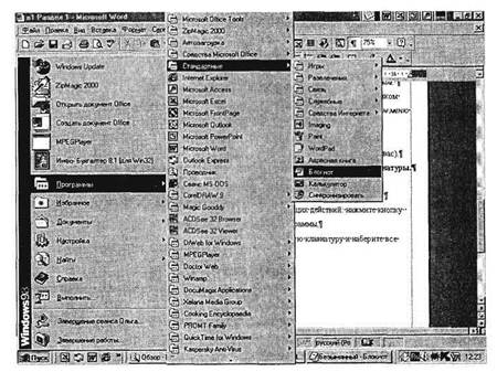 2. Для отображения вводимой с клавиатуры информации откройте электронный блокнот. Для этого выполните следующие действия: нажмите кнопку Пуск, мышкой выберите команду Программы, далее Стандартные, затем – Блокнот (рис. 1.1).
