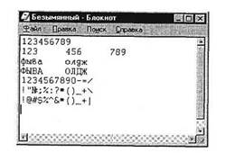 13. Найдите на клавиатуре клавишу [Shift], изменяющую регистр набора. Нажмите [Shift] и, не отпуская ее, вновь нажмите по очереди все клавиши верхнего ряда. Обратите внимание, что печатаются другие символы, отличные от предыдущего набора.