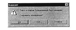 21. Найдите в правом верхнем углу окна Блокнот кнопку Закрыть (с крестиком) и нажмите на нее мышью. Программа выдаст на экран окно-предупреждение (рис. 1.3) с текстом «Текст в файле Безымянный был изменен. Сохранить изменения?». Нажмите кнопку Нет.