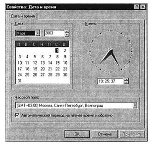 Краткая справка. Двойной щелчок кнопкой мыши по значку Дата/Время панели управления открывает окно для установки параметров даты и времени. Этого же можно достигнуть двойным щелчком по значку индикатора времени на панели задач.