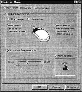7. В окне Мышь (вкладка Кнопки мыши) установите конфигурацию «для правши» (или «для левши», если вы левша) и задайте оптимальную скорость двойного нажатия кнопок мыши (ее можно проверить щелчком в области проверки) (рис. 3.4).