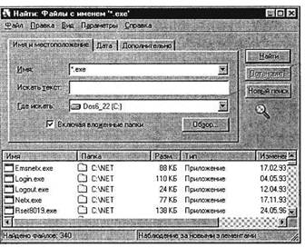 Рис. 3.6. Поиск файлов с разрешением *.ехе на диске С: