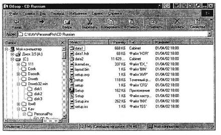 7. Сделайте активным диск С:, щелкнув по нему мышкой. При этом имя диска С: будет отмечено, а его содержание появится в правой области.