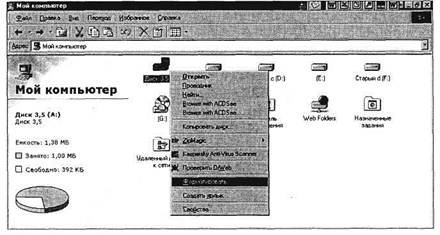 3. Правой кнопкой мыши щелкните по значку Диск 3,5 {А:) и выберите команду Форматировать (рис. 5.3).