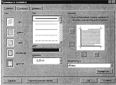 Рис. 10.2. Установка параметров границ текста (рамки)