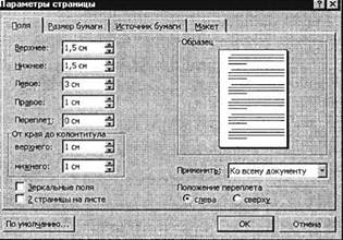 Рис. 10.5. Задание параметров страницы и расстояния от края до колонтитула