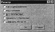 1. Выделяя отдельные строки третьего фрагмента текста и пользуясь командой Формат/Регистр (рис. 13.3), отформатируйте текст следующим образом: