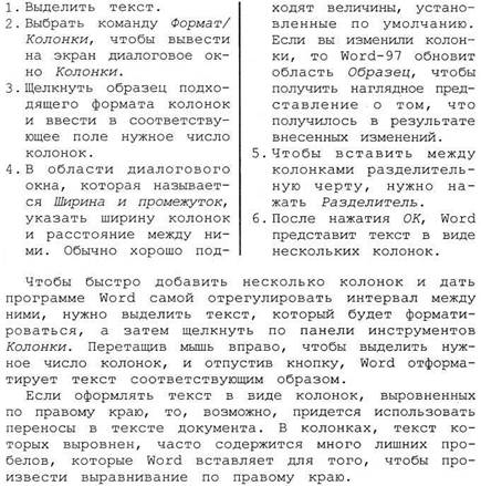 Чтобы оформить текст в виде нескольких колонок, нужно выполнить следующие действия: