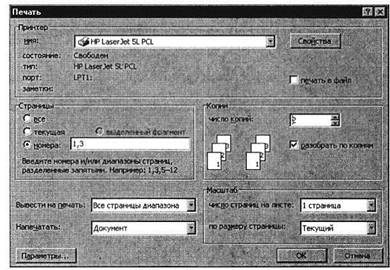 2. Для печати диапазона страниц или нескольких копий выполните следующие действия – Файл/Печать (рис. 14.6). Задайте номера страниц для печати – 1, 3 и количество копий – 2.