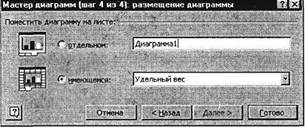 Четвертый шаг мастера диаграмм. Поместите диаграмму на имеющемся листе (рис. 17.5).