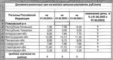 5. Произведите расчет изменения цены в колонке «Е» по формуле