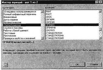 Рис. 18.2. Выбор функции расчета среднего значения СРЗНАЧ