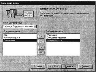 Рис. 23.10. Выбор полей при создании формы мастером форм
