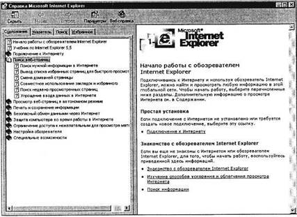 Для получения справки воспользуйтесь меню Справка/ Оглавление и указатель/Учебник по Internet Explorer (рис. 29.2).