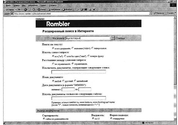 Рис. 29.3. Поисковая система Rambler – www.rambler.ru