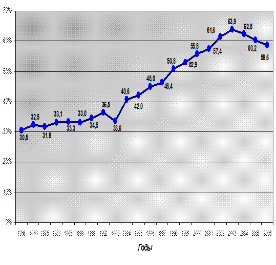 В период с 1966 по 1992 годы износ основных фондов находился на уровне 30–34% благодаря их своевременному воспроизводству. В результате резкого сокращения объемов инвестиций в период экономического спада степень износа фондов к 2003 г. достигла критической величины 63,9%.