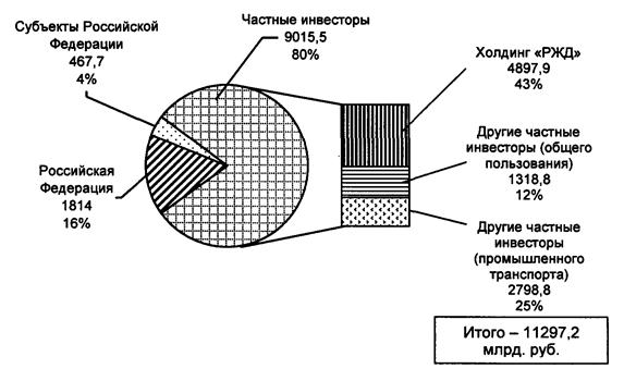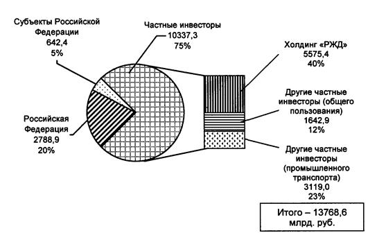Рис. 14.10. Распределение инвестиций на развитие железнодорожного транспорта