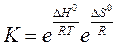 Константа химического равновесия зависит от природы реагентов и от температуры. Она связана с изменением стандартной энергии Гиббса химической реакции DG° уравнением DG° = -RT * ln K,