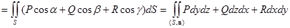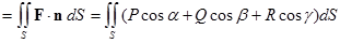 Поверхностный интеграл первого рода в формуле (1) связан с поверхностным интегралом второго рода равенством: