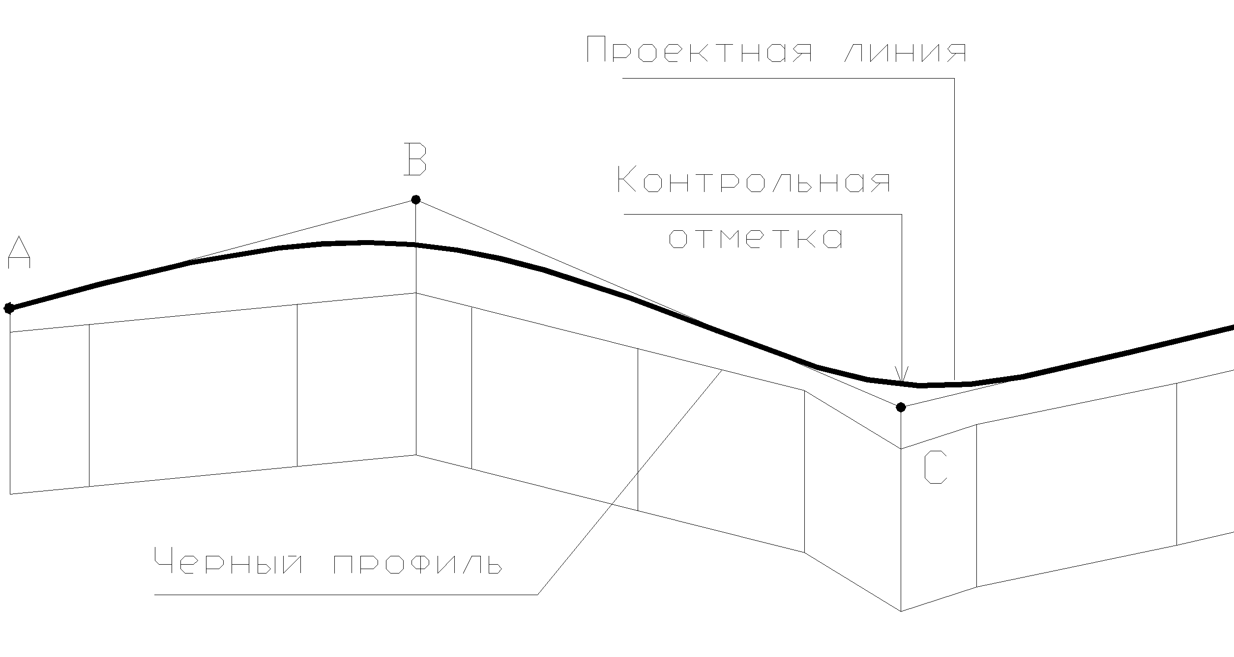 При ручном проектировании проектную линию прокладывают с помощью гибкой линейки или лекал вертикальных кривых с учетом руководящих рабочих отметок и контрольных отметок. Полученную проектную линию заменяют ломаной.
