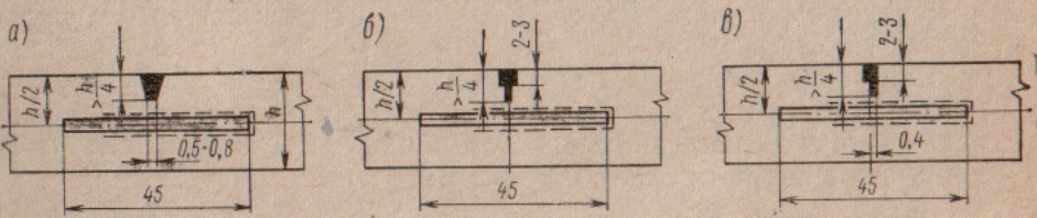 Конструкция поперечных швов сжатия: а)в свежеуложенном бетоне, б)комбинированным способом, в)в затвердевшем бетоне.