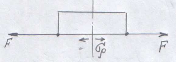 Сила F прикладывается по краям плиты в каждую сторону. В результате действия силы F возникает внутреннее растяжение:
