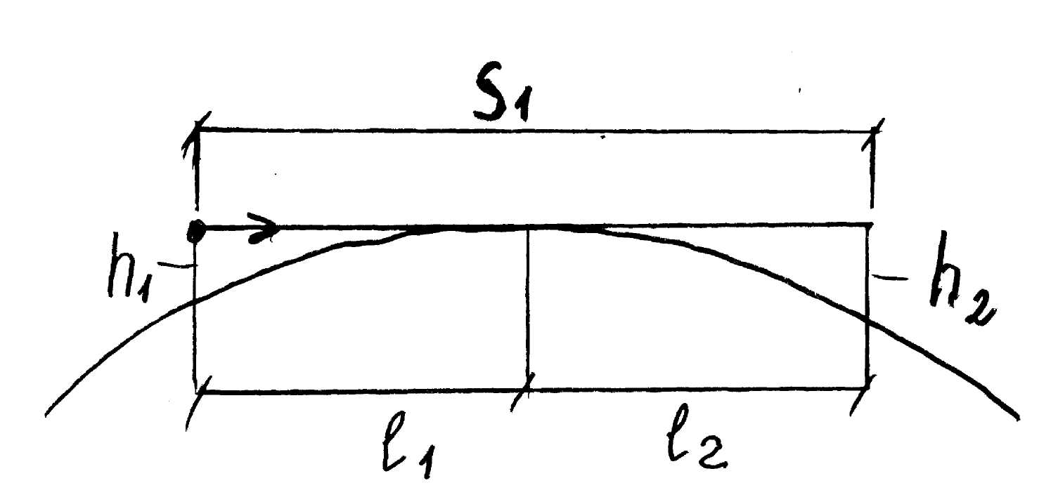 Радиус выпуклой кривой R мин вып. Определяется исходя из обеспечения расчетной видимости S1 необходимой для остановки перед неподвижным препятствием высотой h2=0,2 м.