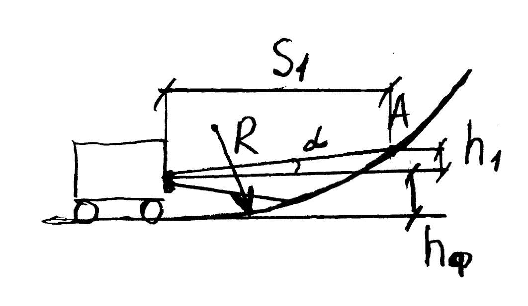 Минимальный радиус вертикальной кривой рассчитывается исходя из обеспечения видимости для остановки S1.