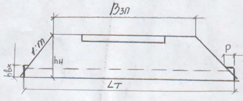 В случае длинномерных труб без оголовков: m1=1,5(Lф- Lт)/hн- исправленное заложение откосов ЗП.