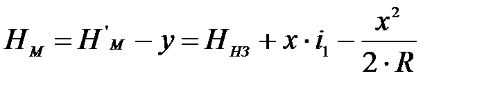 На участках перехода насыпи в выемку определяют положение нулевых точек (рабочие отметки, в которых равны нулю), вычисляя расстояние Х: