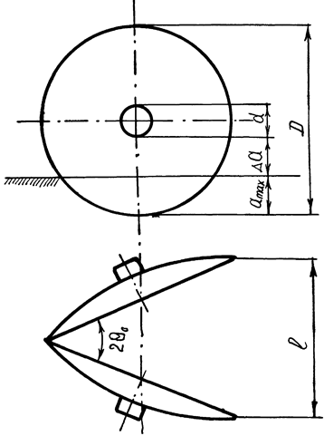 Дисковый сошник состоит из двух сферических дисков, поставленных под углом 2q0 друг к другу так, что их кромки сходятся впереди (рисунок 12).