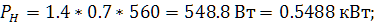 - номинальная мощность Pном = 550 Вт;