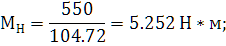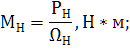 - номинальный вращающий момент двигателя: