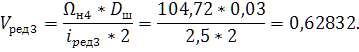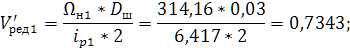 Определение ожидаемой линейной скорости на выходе редуктора с ориентировочным передаточным числом: