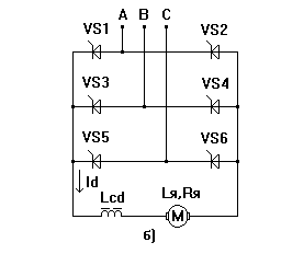 Рисунок 3. Трехфазная мостовая схема включения тиристоров