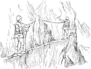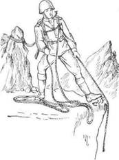 Рис. 4. Страховка через плечо и скальный крюк.