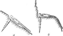 | Рис. 9. «Подтяжки»: а—из вспомогательной веревки: б—из основной веревки |