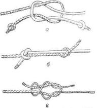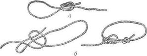 | Рис. 10. Узлы для связывания двух концов веревок: а— «Морской»; б — «ткацкий»; |