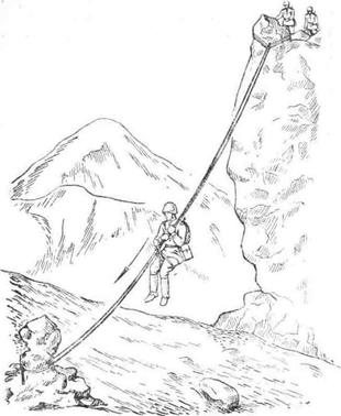 Рис. 15. Переправа через горную реку с высокими берегами по веревке