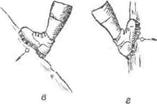 Рис. 16. Положение ступней ног при опоре на скалах: