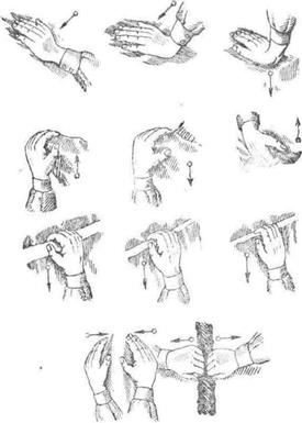 Рис. 17. Положение рук при опорах и захватах на скалах