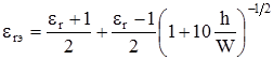 Эффективная диэлектрическая проницаемость для микрополосковой линии определяется по формуле: