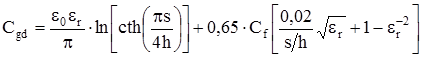 Волновое сопротивление и эффективная диэлектрическая постоянная определяются по формулам: