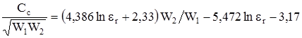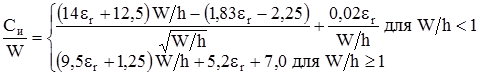 - индуктивности на единицу длины (Гн/м) микрополосковых линий с шириной