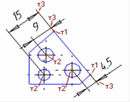 4. Указать точку т3, определяющую положение размерной линии и текста. Тот конец отрезка, ближе к которому окажется размерная линия, будет принят за первую точку привязки т1.