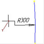 Радиальный размер с изломом используется, когда требуется образмерить дугу очень малой кривизны, например, как на рисунке.